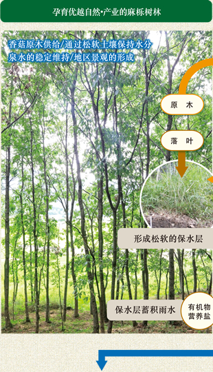 通过麻栎树林及贮水池进行持续性维持的以原木香菇生产为主的日本第一农林水产系统