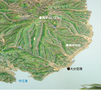 The Kunisaki Peninsula Usa area is situated in northeast Kyushu, south of the Seto Inland Sea. It is formed by four cities and one village, with the round peninsula at their center. The geographical terrain features mountain ridges and deep valleys extending out radially from the Mt. Futago mountain ranges at the centre of the peninsula. Plain lands are narrow and there are many short and steep rivers. Due to its low precipitation and volcanic soil that quickly absorbs any rainfall this region has struggled with the difficulties of securing water since ancient times.
