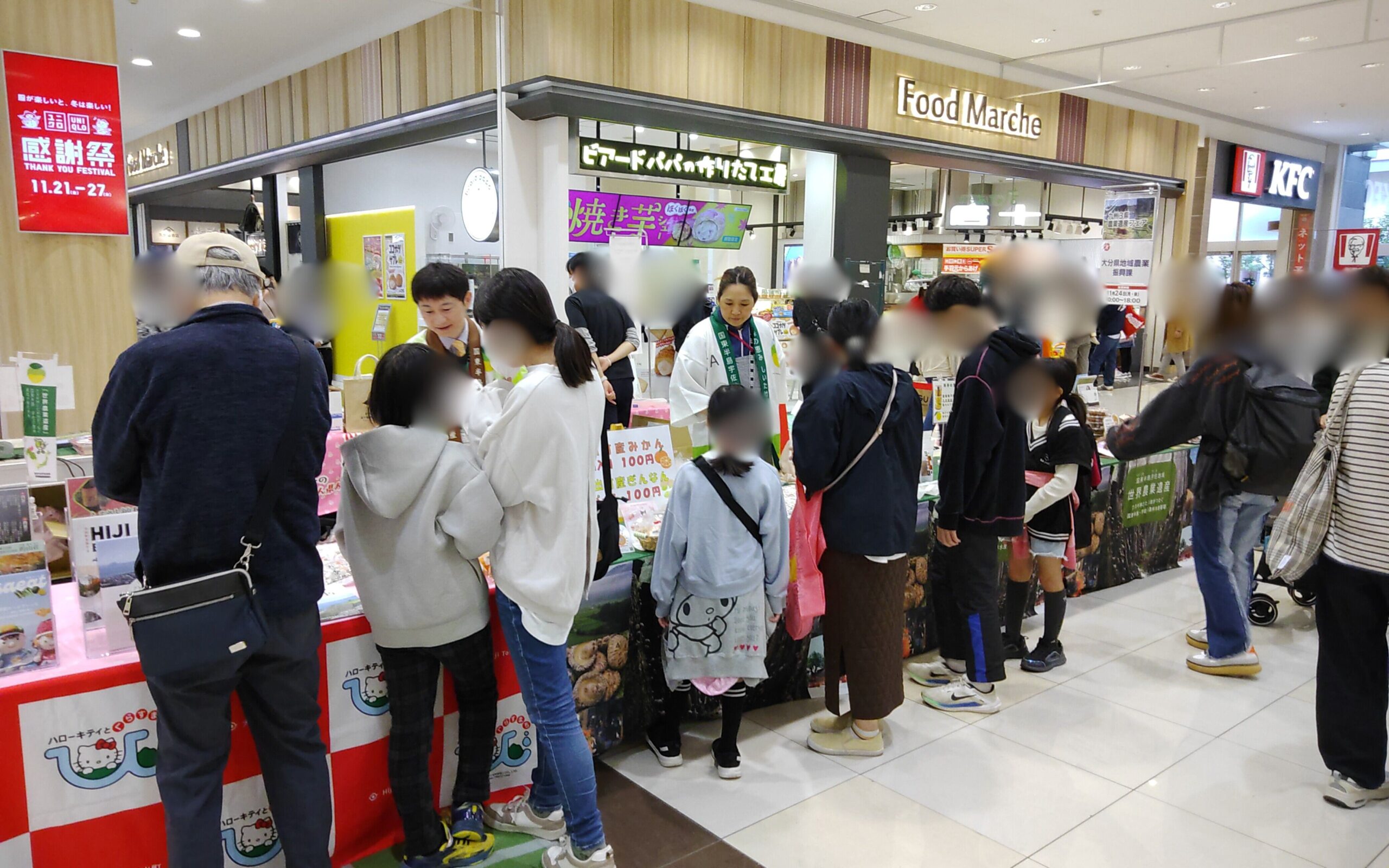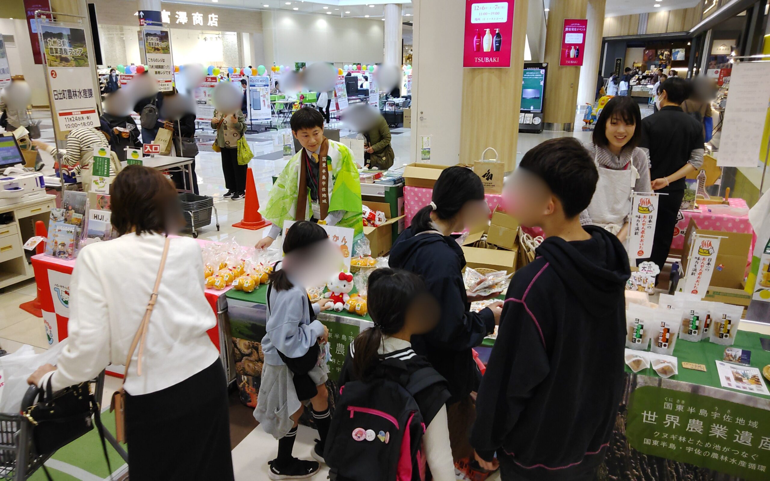 11月24日(月・振休)イオンモール福岡にて「九州3県農業遺産フェア」を開催しました。九州の農業遺産地域が集合し、パネル展示や特産品の販売、特産品が当たるガラポン抽選会を実施しました。会場には、各地域からの野菜やお茶、調味料、お菓子などの種類豊富な特産品が並び、多くの方にご来場いただきました。