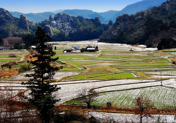 コメント:すばらしい景観の宇佐マチュピチュ周辺にはクヌギ林や棚田があり、冬には雪化粧の眺めがすばらしいです。また、近くの山々にはクヌギ林があり、シイタケ栽培が盛んです。